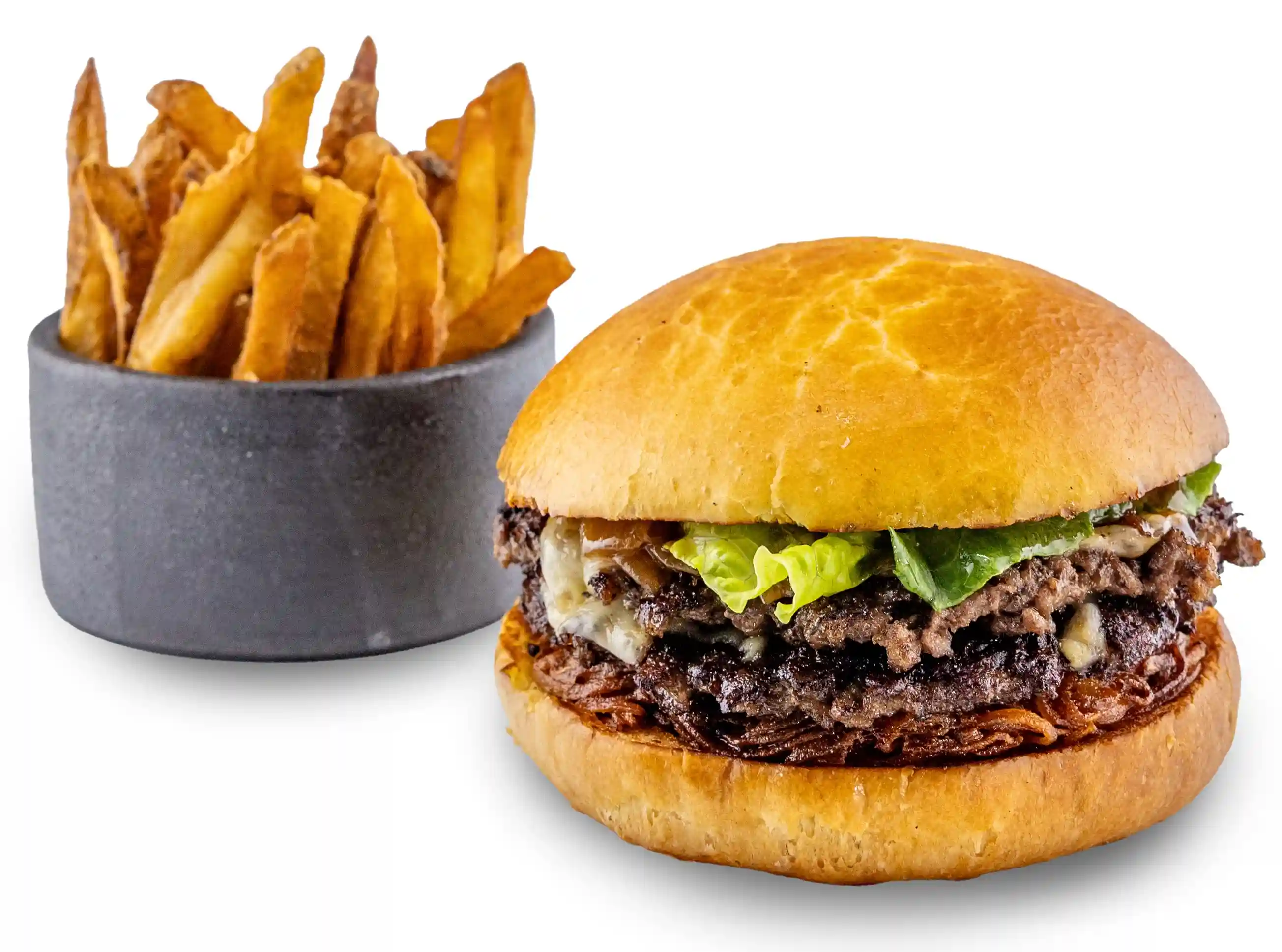 Marinara sauce, cheddar, ground beef, eˮ sunny side up, crispy shoestring potatoes