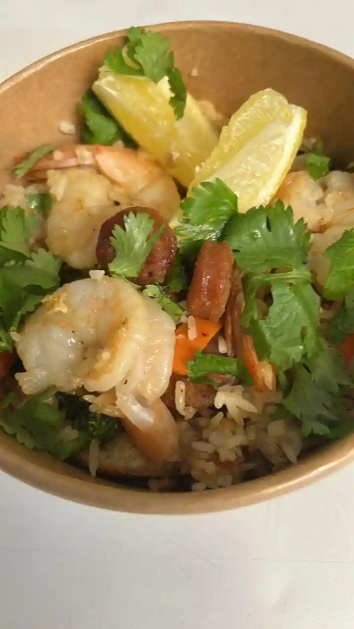Shrimp, avocado, aspargus, arugula, mas…