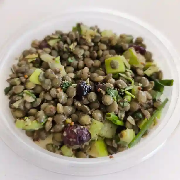 Lentilles, céleri, pomme verte cranberry, coriandre